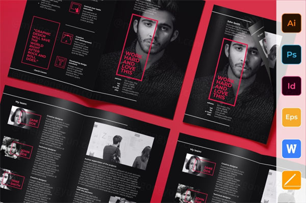 图穷联素材库 » 艺术策划团队工作室宣传手册设计模板 Art Director Brochure Bifold