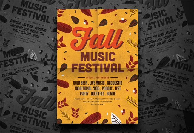 图穷联素材库 » 秋季主题音乐盛会海报传单设计PSD模板 Fall Music Flyer