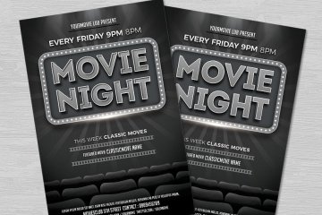 图穷联素材库 » 电影宣传海报传单模板 Movie Night Flyer