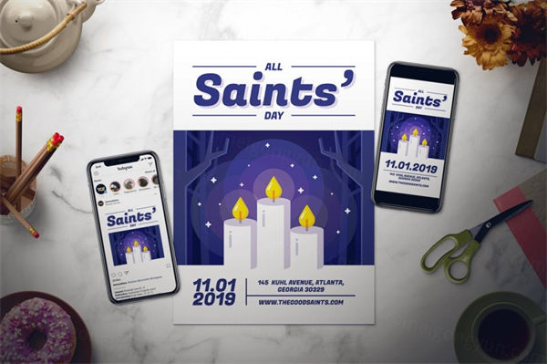 图穷联素材库 » 年万圣节主题活动海报设计模板 All Saints’ Day Flyer Set