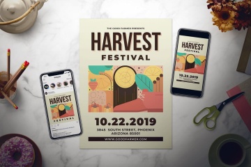 秋天丰收主题节日活动海报设计套装 Harvest Festival Flyer Set