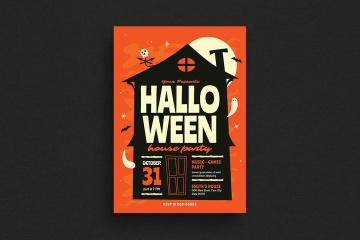 万圣节鬼屋派对活动海报设计模板 Halloween House Party Event Flyer