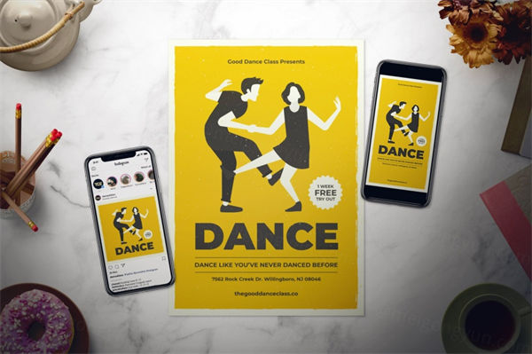 图穷联素材库 » 舞蹈培训课程推广海报设计模板 Dance Class Flyer Set