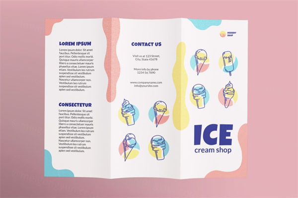 雪糕店三折页传单设计模板 Ice Cream Shop Brochure