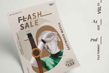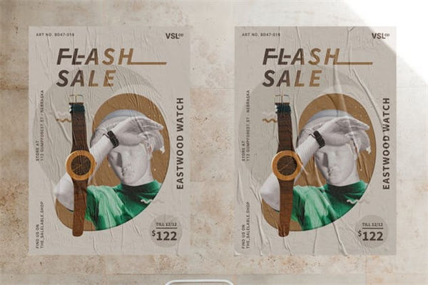 图穷联素材库 » 手表单品优惠促销海报设计模板 Wood Watch Poster