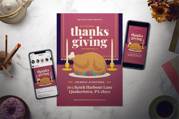 图穷联素材库 » 感恩节主题传单设计模板素材套装 Thanksgiving Day Flyer