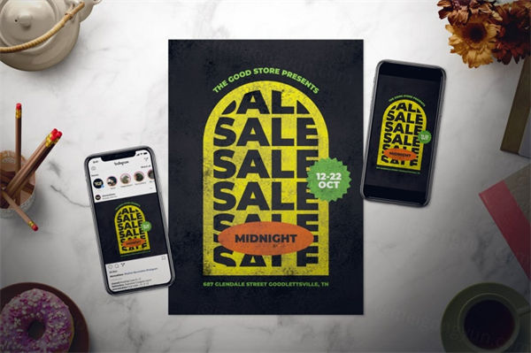 图穷联素材库 » 复古设计风格双11购物节海报设计素材 Retro Midnight