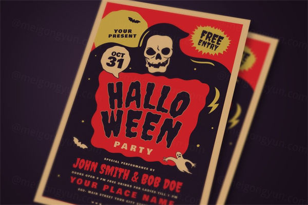 图穷联素材库 » 复古老派风格万圣节活动海报模板 Retro Old Halloween