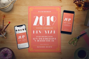 图穷联素材库 » 珊瑚红流行色彩新年主题海报设计模板 Living Coral New