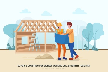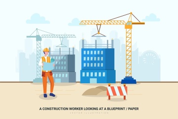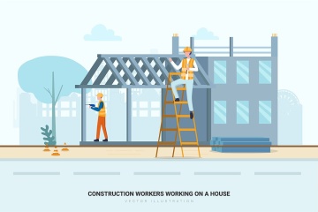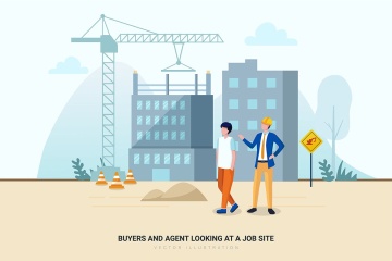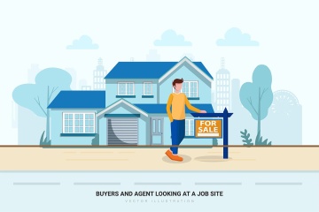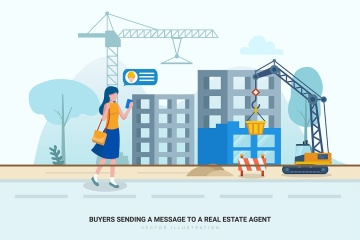 时尚简约流行风格的扁平化建筑与房地产矢量插图banner海报设计模板
