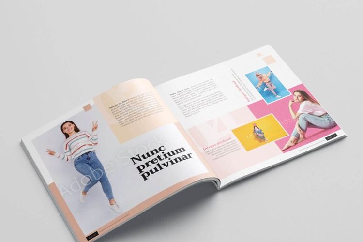 图穷联素材库 » 方形时尚模特服装杂志图册模板