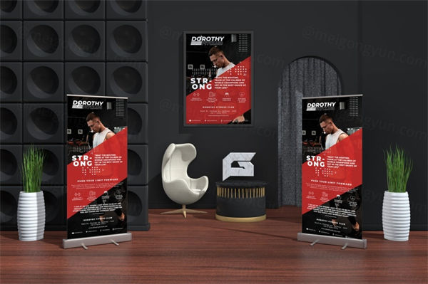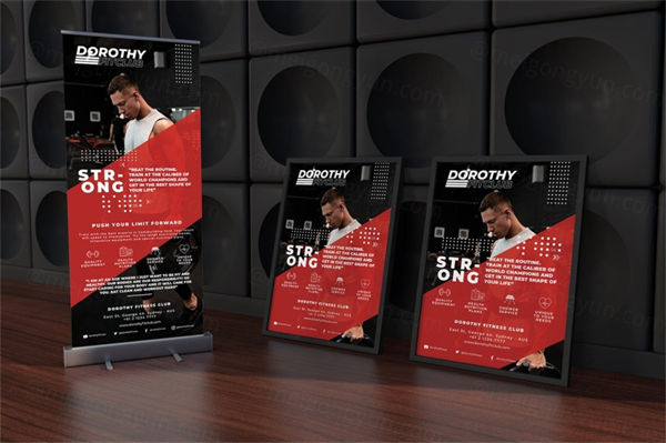 图穷联素材库 » 高品质健身房体育运动易拉宝X展架门型架宣传单DM海报设计模板
