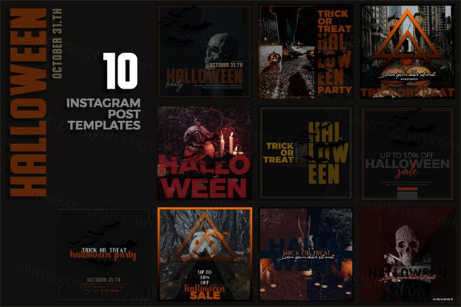 图穷联素材库 » 万圣节Ins海报PSD模板素材 Halloween Instagram Post Templates