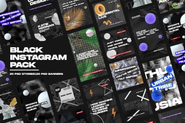 图穷联素材库 » 高品质黑色配色的Instagram社交媒体banner海报