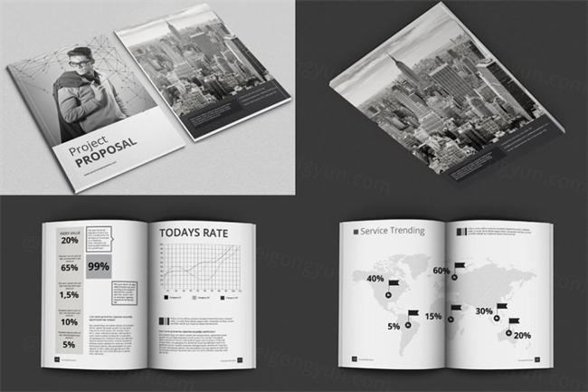 图穷联素材库 » 黑白极简设计风格项目提案杂志画册模板