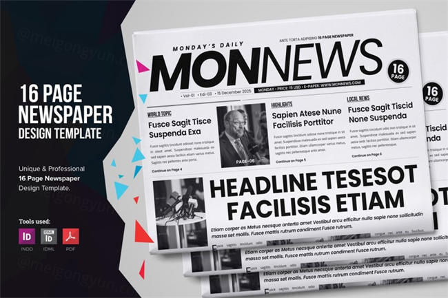 图穷联素材库 » 新闻资讯时事报纸画册设计模板