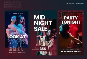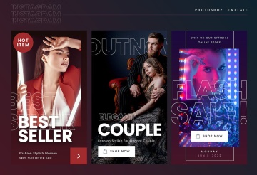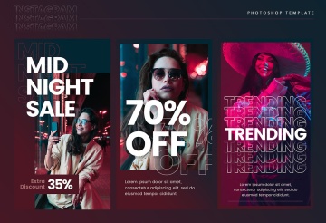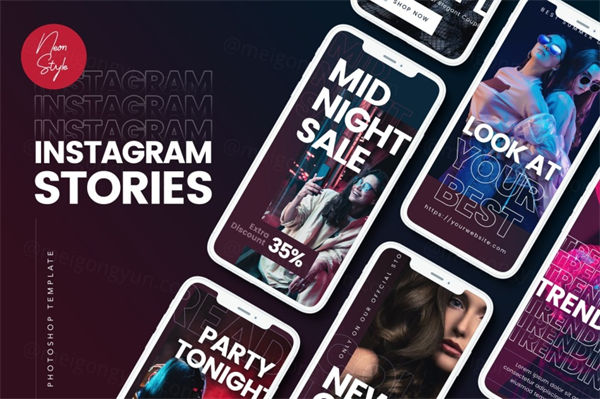 图穷联素材库 » 高端绚丽霓虹灯效果Instagram社交媒体banner海报