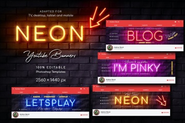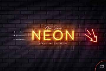 图穷联素材库 » 时尚高端绚丽霓虹灯YouTube社交媒体banner海报设计