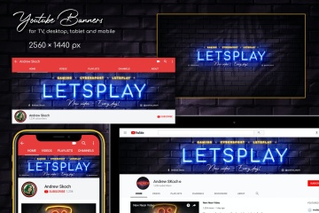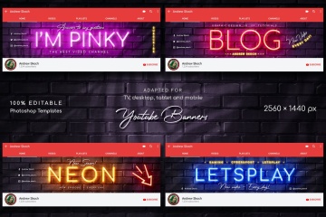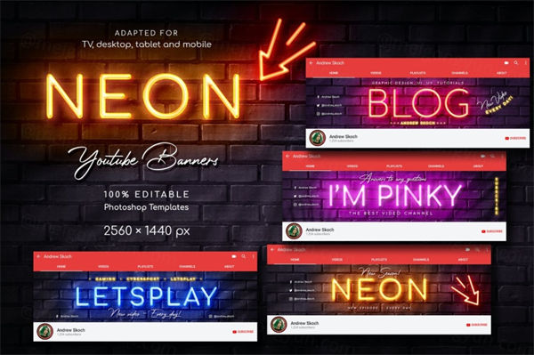 时尚高端绚丽霓虹灯YouTube社交媒体banner海报设计