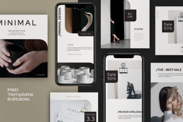 图穷联素材库 » 简约时尚高端优雅的极简主义社交媒体banner海报设计