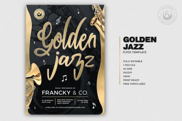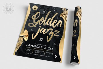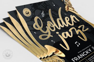 金色爵士音乐活动宣传海报传单模板