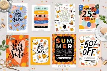图穷联素材库 » 16款夏季时尚可爱的促销海报EPS矢量模板 Summer Sale Posters