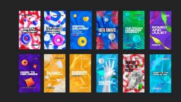 24个模板,标题为社会媒体上的帖子和故事。用大胆的颜色和形状给你的观众带来惊喜。非常适合推广在线活动、数字产品、高科技、创新、科学和复杂的抽象概念。在Instagram、Facebook、Snapchat和VK上使用。