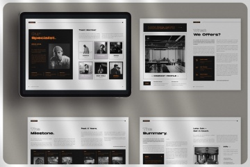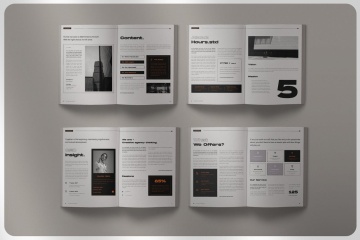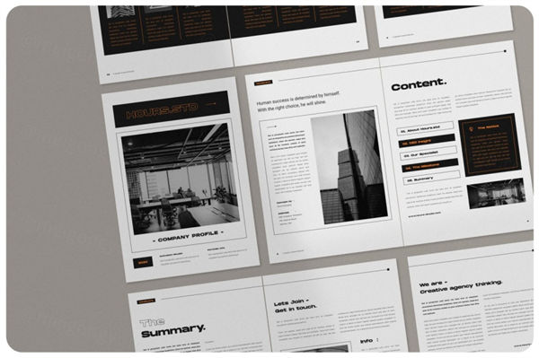 时尚高端多用途的高品质商业商务品牌手册画册宣传册杂志房地产楼书设计模板,带有16页Indesign文档/模板的社论版面模板,并且均以A4(297x 210mm)两种格式设计。易于使用和定制。