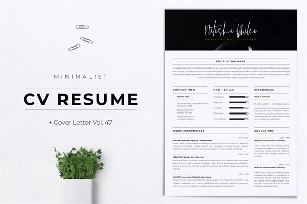 极简主义专业设计师简历模v47 Minimalist CV Resume