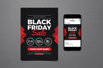 黑色星期五促销宣传单+ Instagram帖子模板