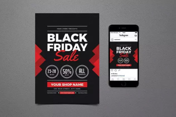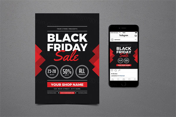 图穷联素材库 » 黑色星期五促销宣传单+ Instagram帖子模板