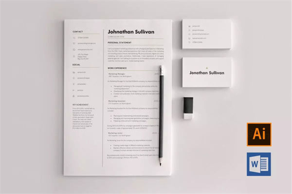 简约优雅的简历个人名片设计模板 Word CV and Business Card – Personal ID