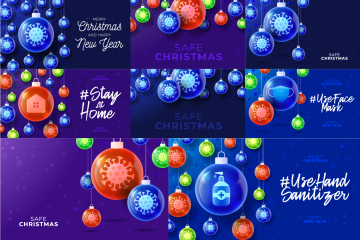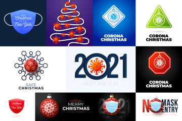 图穷联素材库 » 45款新冠疫情圣诞节新年快乐插画海报EPS矢量模板素材 Christmas Banners