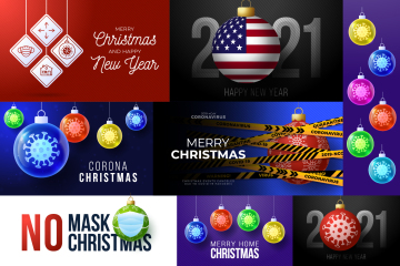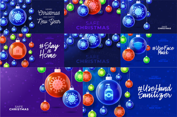 45款新冠疫情圣诞节新年快乐插画海报EPS矢量模板素材 Christmas Banners
