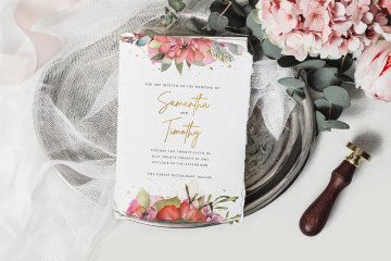 图穷联素材库 » 粉色水彩花卉婚礼邀请函模板素材 Gold Floral Wedding Invite Suite