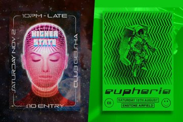复古超现实主义迷幻派对三维人体线框图海报设计模板 SamCarter - Old 90s Rave Flyers