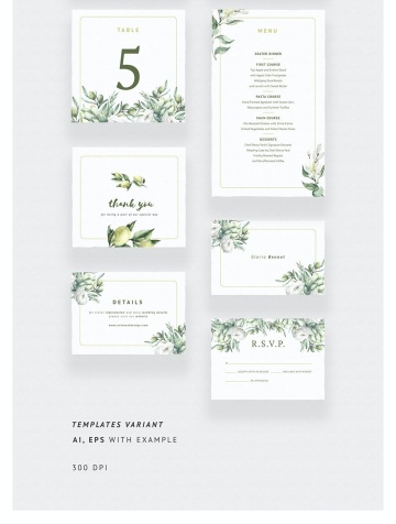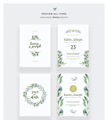 图穷联素材库 » 农场花园婚礼手绘水彩花束花卉邀请函矢量模板 Italian Garden Wedding Collection