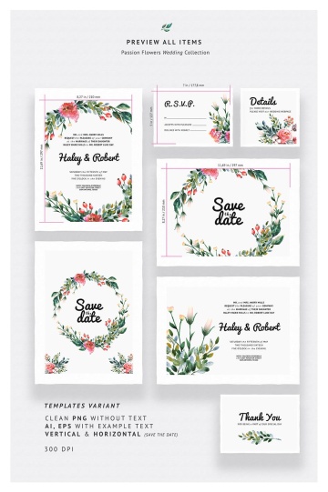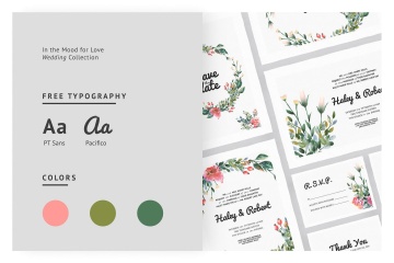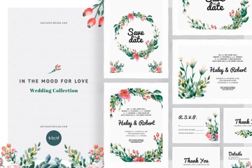 在 Mood for Love 婚礼系列中。包括:保存日期、邀请、回复、详细信息和感谢卡。模板已准备好打印。只需用您自己的信息替换文本即可。