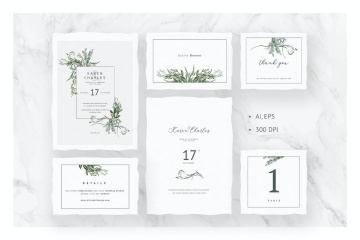 保存日期 5 x 7",正面和背面邀请 5 x 7",正面和背面 RSVP 卡 5 x 3,5" 详细信息卡 5 x 3,5" 桌号 5 x 5" 感谢卡 5 x 4,25 " 护送卡 5 x 3,25" 产品特点