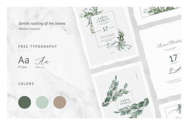 图穷联素材库 » 春夏乡村农场花园婚礼请柬邀请函矢量设计模板 Gentle Rustling Of The Leaves