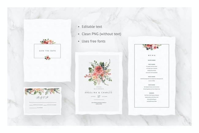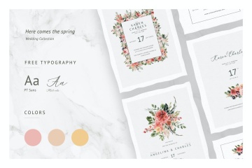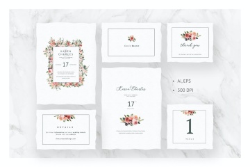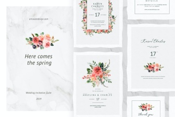 图穷联素材库 » 优雅水彩手绘玫瑰牡丹花卉婚礼请柬邀请函设计模板 Here Comes The Spring Invitations