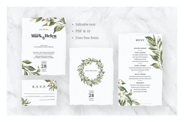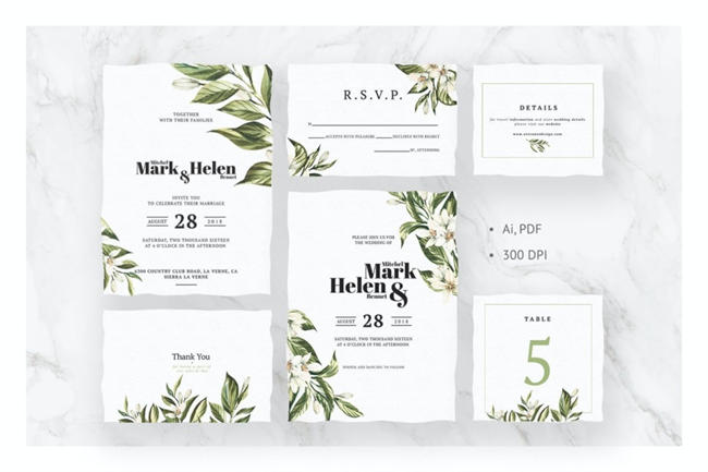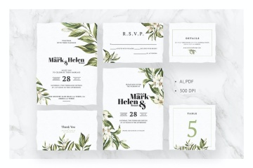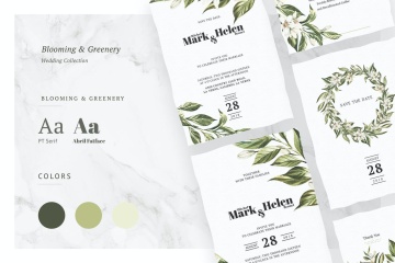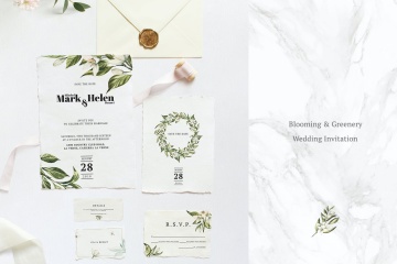 图穷联素材库 » 优雅的水彩手绘春天花卉邀请函请柬设计模板 Blooming Greenery Invitation
