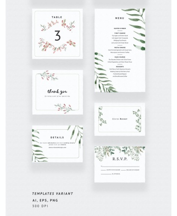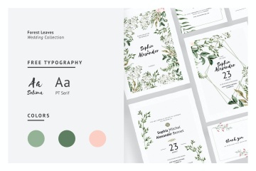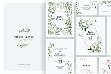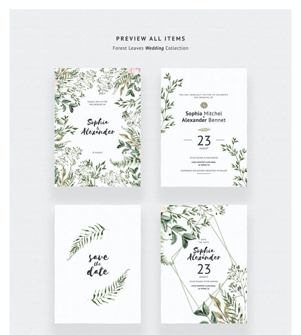 图穷联素材库 » 手绘水彩森林花园主题婚礼请柬邀请函设计模板 Forest Leaves Wedding Invitations