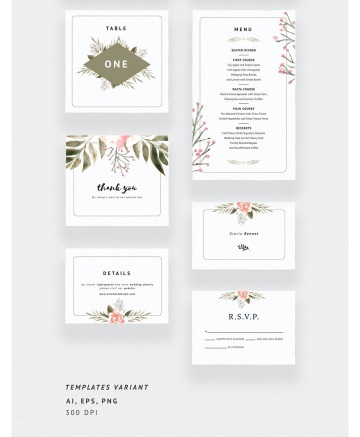 保存日期 5 x 7",正面和背面邀请 5 x 7",正面和背面 RSVP 卡 5 x 3,5" 详细信息卡 5 x 3,5" 桌号 5 x 5" 感谢卡 5 x 4,25 " 护送卡 5 x 3,25" 产品特点