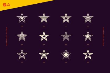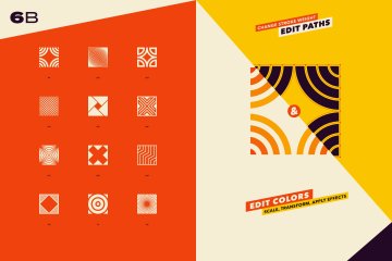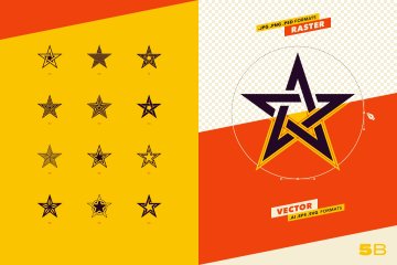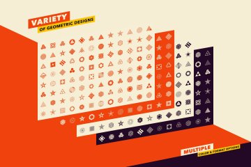 所有文件都整齐地组织成一个文件夹结构,以获得更好的工作流程体验。文件根据形状图形样式和基本形式进行分组,例如圆形、三角形、六边形、星形、正方形和菱形。为了强调形状的视觉形式,它们主要以灰白色、红色、黄色和深紫色显示,但您可以应用自己的调色板并单击几下添加您的品牌名称。所有元素都有多种文件格式供您选择。