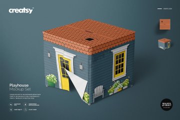 高品质的剧场盒子样机展示模型Playhouse Mockup Set