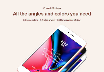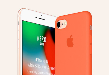 为广告素材精心制作的iPhone 8手机壳贴图样机PSD模板HERO iPhone 8 Mockups