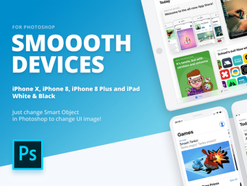 图穷联素材库 » 苹果系列产品iPhoneX iPhone8 iPad显示设备产品展示PSD贴图样机模型Smoooth Devices