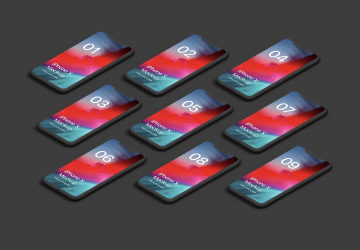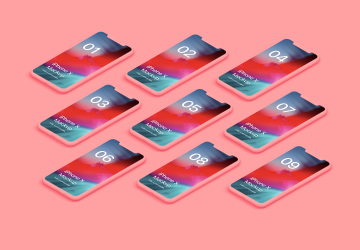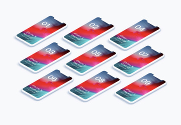 iPhone X Clay Isometric - Right苹果白模等距透视角度 APP手机网页贴图展示PSD样...