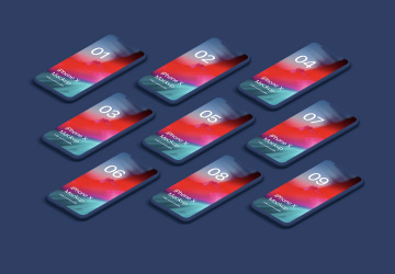 图穷联素材库 » iPhone X Clay Isometric - Right苹果白模等距透视角度 APP手机网页贴图展示PSD样...